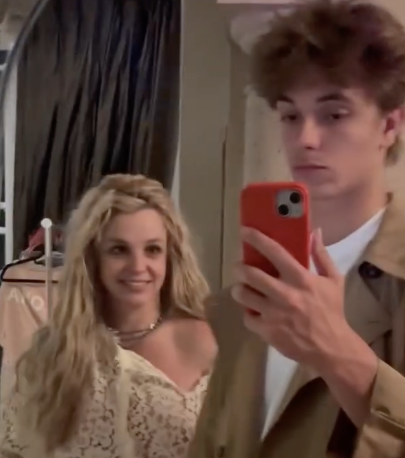 In the clips, Spears and the 19-year-old laugh, pose for mirror selfies, and joke around together, with Spears captioning one post,